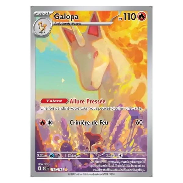 Découvrez Galopa (dri189), une carte Pokémon de l’extension Rivalités Destinées, provenant du bloc Écarlate & Violet. Idéale pour compléter votre collection, cette carte Illustration Rare plaira autant aux collectionneurs qu’aux joueurs.