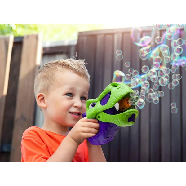 • COMPREND : Gazillion Bubbles Roarin’ Rex Bubble Blaster et une bouteille de 118ml de Solution à bulles Gazillion.