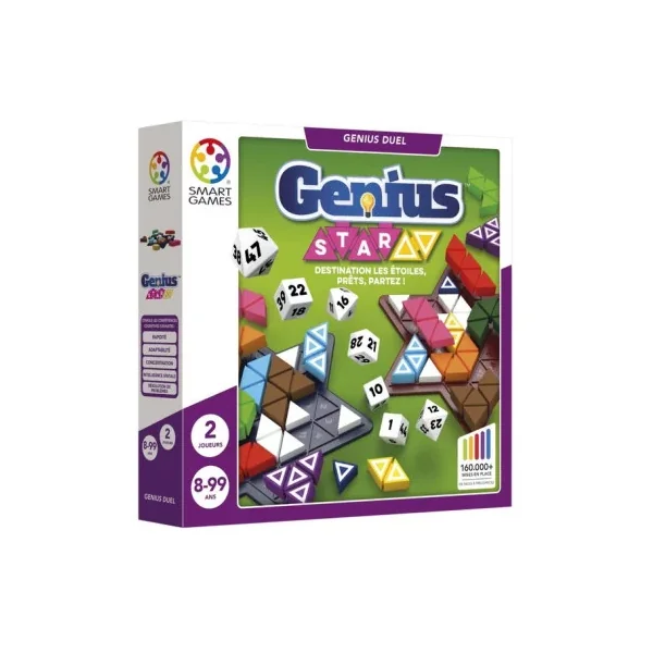 La toute nouvelle collection « Genius duel » de Smart vous présente son second titre: Genius Star. Mêlant logique et rapidité, il permet aux joueurs de s’affronter lors de parties courtes. Il propose cinq niveaux de difficulté, pour jouer à égalité ou avec des différences choisies.