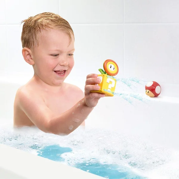 Comprend 2 gicleurs de bain en assortiment : Mario & Goomba ou Super Champignon & Fleur de feu