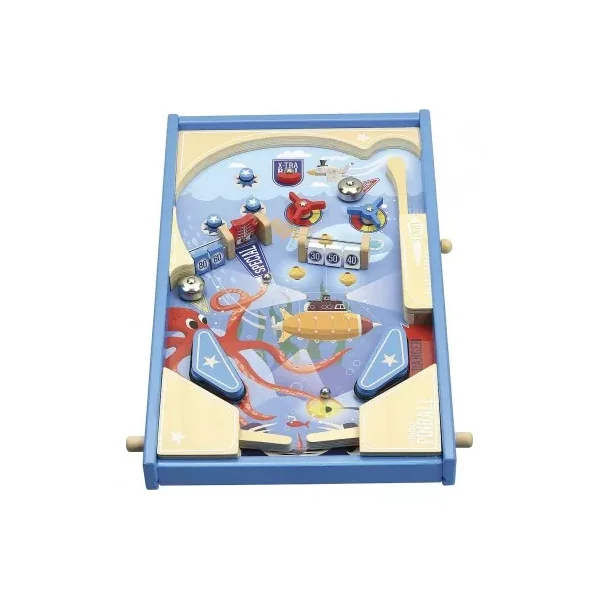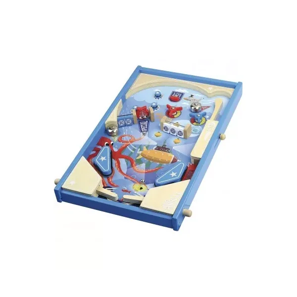 Ce flipper en bois à poser est livré avec 3 billes en métal pour dégommer les cibles, actionner les clochettes, emporter les tourniquets. Marquez le plus de points et remportez la bataille sous la mer.