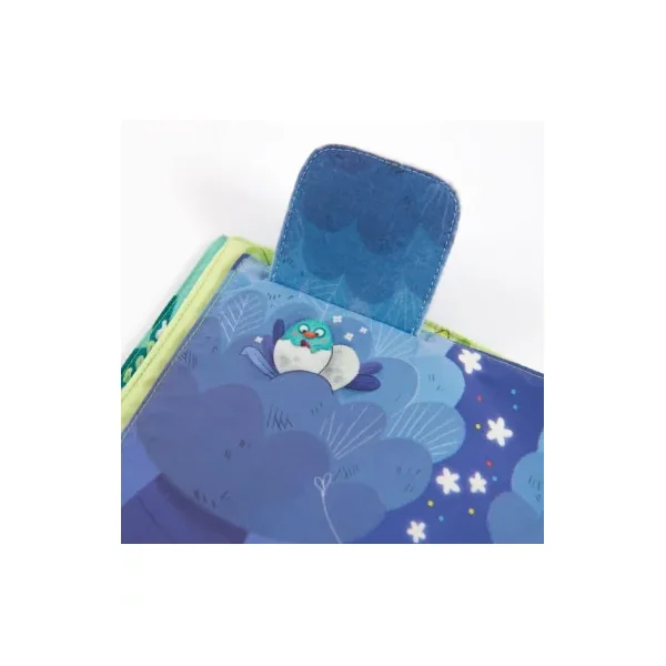 Livre en tissu 6 pages avec un petit poussin chantant à accompagner dans toutes les activités de la jungle! Jeux de matières à découvrir et éléments à scratcher, il est idéal pour développer la motricité fine!