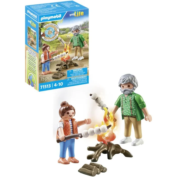 Griller des guimauves sur le feu de camp est très amusant pour les petits et les grands ! Les guimauves sont enfilées une à une sur le bâton puis lentement maintenues au-dessus du feu. Mais attention : ne vous approchez pas trop, sinon vous pourriez vous retrouver avec du charbon de bois. Ce set comprend deux personnages PLAYMOBIL, un feu de camp, deux bâtons en bois et six guimauves. Les guimauves peuvent être placées et retirées des branches. La nouvelle gamme Tiny House est fabriquée avec plus de 80% de matériaux recyclés ou biosourcés en moyenne. Avec 2 personnages et des accessoire – Les chamallows peuvent être piqués sur les bâtonnets. 15 pièces.