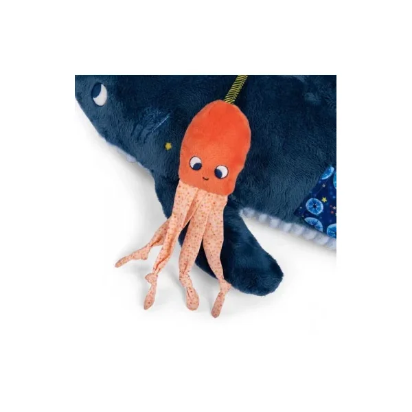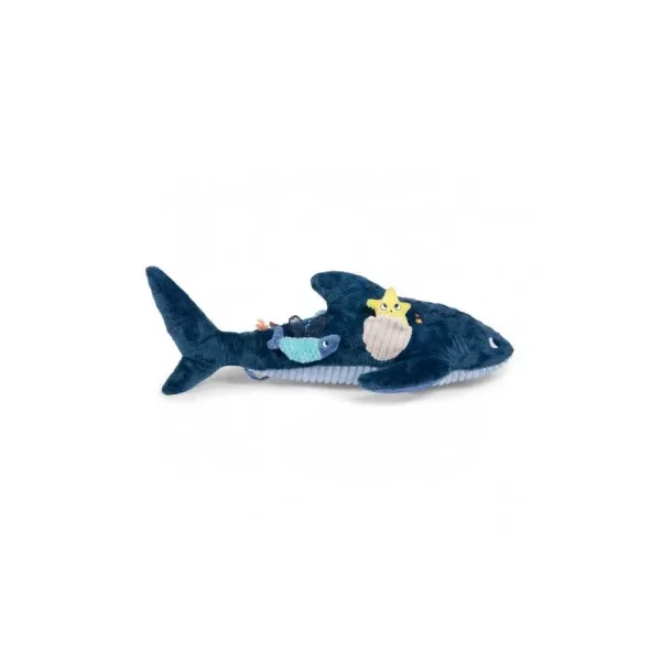 Ce gentil requin bi-matières cherche un ami pour jouer! Sur son dos tout doux sont cachées de petites créatures marines. Un jouet d’éveil sensoriel en tissu qui offre de nombreuses activités et textures pour éveiller bébé en douceur : miroir, grelot, papier crissant, étiquettes à attraper…