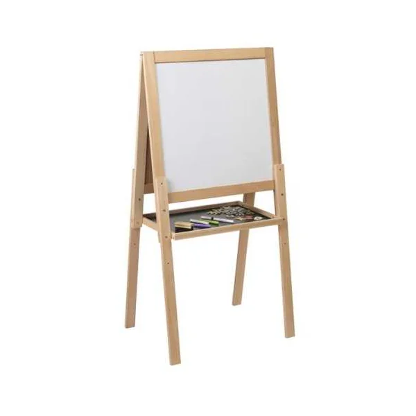 Ce tableau polyvalent offre deux faces : une ardoise pour écrire à la craie et une surface blanche magnétique pour utiliser un feutre effaçable et jouer avec des magnets. Pratique, il est équipé d’une tablette de rangement où l’enfant pourra poser les accessoires inclus : des lettres aimantées, des craies, un feutre effaçable et une brosse.