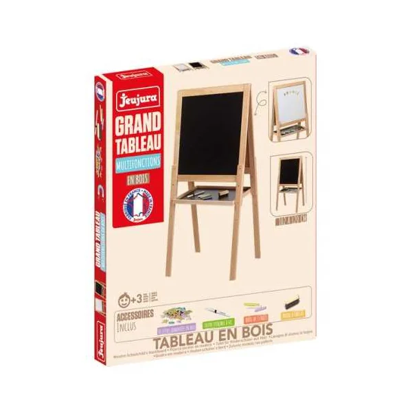 Découvrez le grand tableau multifonctions en bois de Jeujura, un superbe tableau en bois fabriqué en France, idéal pour les enfants dès 3 ans. À la fois ludique et éducatif, il est parfait pour les filles et les garçons qui aiment écrire, dessiner et exprimer toute leur créativité.