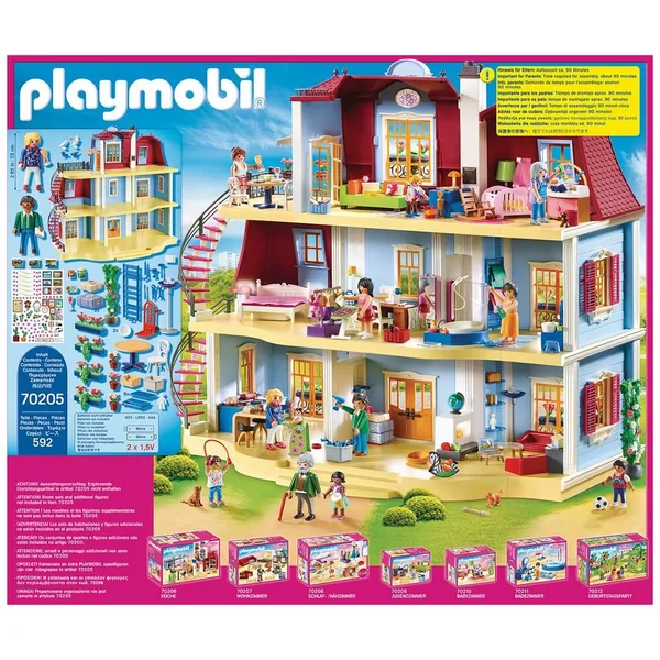 Emménagez dans la nouvelle maison traditionnelle ! Avec terrasse sur le toit, escalier en colimaçon, sonnette qui fonctionne (nécessite 2 piles AAA de 1,5 V non fournies) et boîte aux lettres à ouvrir. Avec deux personnages. Parfaitement combinable avec les réf. 70206 à 702011.Dimensions : 68 x 36 x 62 cm (LxPxH). Emménagez dans la nouvelle maison traditionnelle ! Avec terrasse sur le toit, escalier en colimaçon, sonnette qui fonctionne et boîte aux lettres à ouvrir. Avec 2 personnages, 1 terrasse sur le toit et des accessoires. La sonnette de la porte fonctionne. 592 pièces.