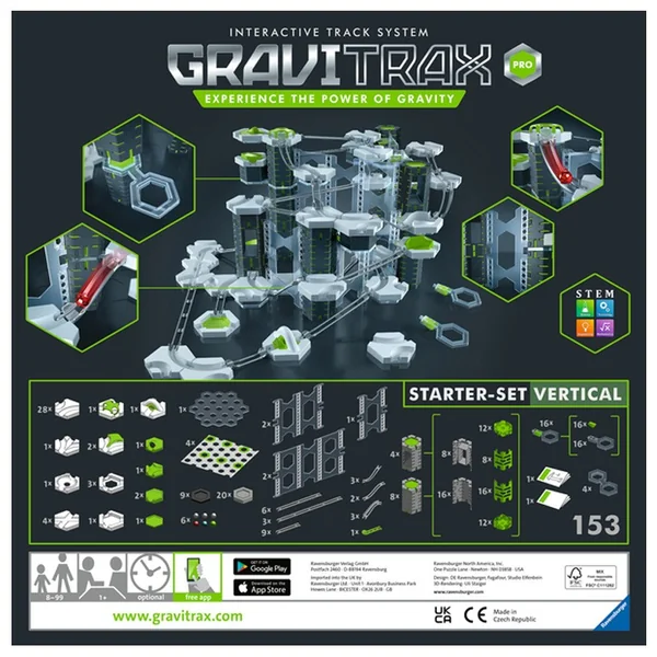 Avec le Starter Set PRO, construis des circuits de billes GraviTrax encore plus vertigineux ! Découvre des éléments inédits et exclusifs comme des piliers, des murs et des balcons pour construire en hauteur et créer des assemblages encore plus impressionnants ! Ce Starter Set PRO est idéal pour découvrir l’univers GraviTrax ou compléter ta collection avec plus de possibilités, plus de challenge et de créativité.