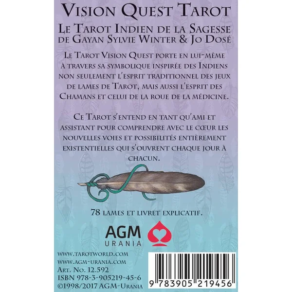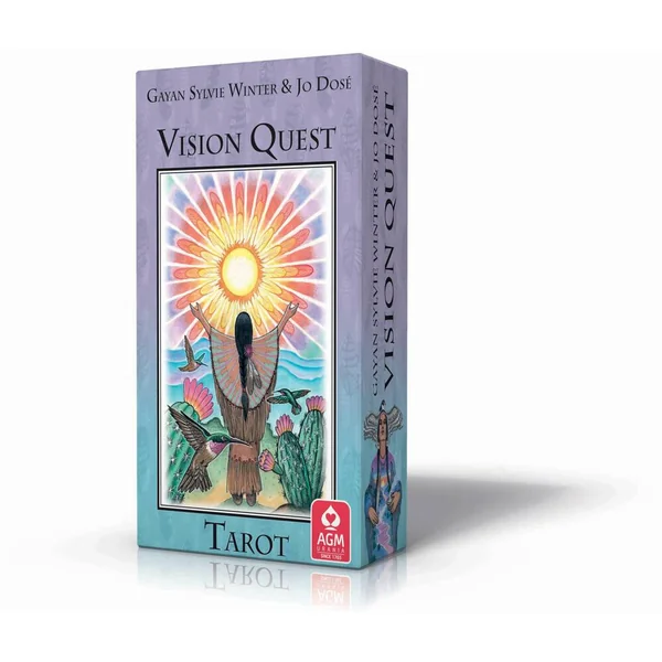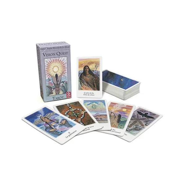 Le tarot Vision Quest conçu par Gayan Sylvie Winter et illustré par Jo Dosé porte en lui, grâce à sa symbolique d’inspiration amérindienne, non seulement l’esprit des jeux de tarot traditionnels, mais aussi l’esprit des chamans et de la roue de la médecine.