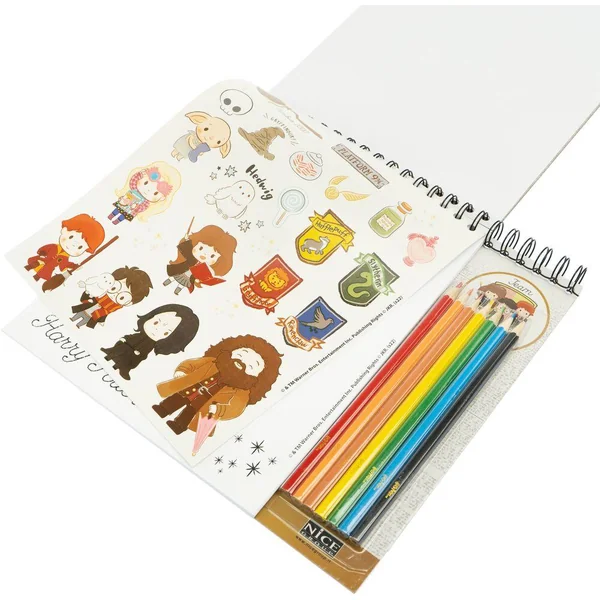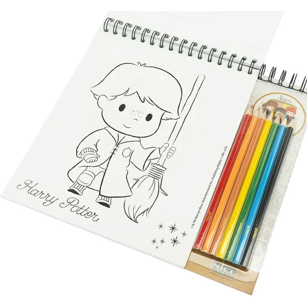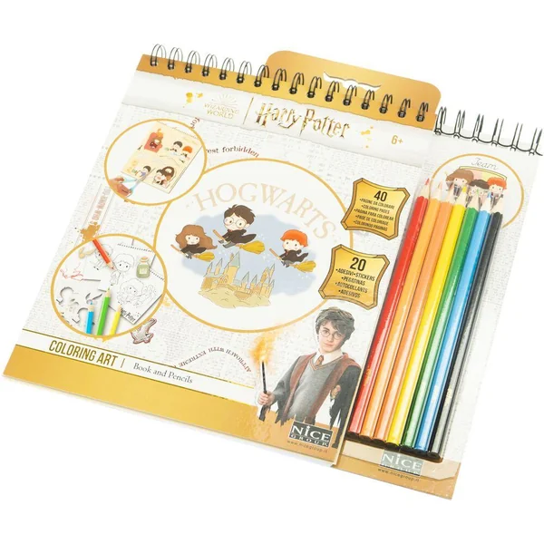 Contient: 40 pages à colorier illustrées, coffret de 7 crayons de couleur, couverture rigide à spirale. Illustrations HP originales.