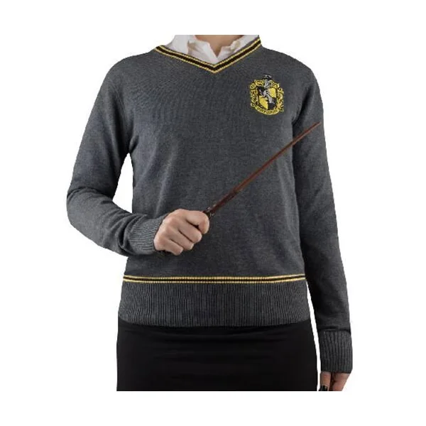 60% Polyester + 40% Coton. Ecusson poufsouffle brodé sur le devant .Tricot doux au toucher. Finition col en V.