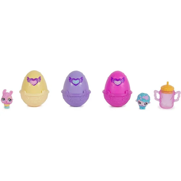 Un panier de 6 Hatchimals à collectionner spécial Pâques.Coffret comprenant 3 oeufs pour découvrir 4 Hatchimals et 2 Hatchimals hors de leur oeuf pour des heures de jeu !Verse de l’eau dans l’œuf grâce au biberon inclus pour le faire éclore et découvrir ta figurine Hatchimals. Dans chaque œuf se cache un Hatchimals, une petite créature mignonne. Emporte-les partout grâce au panier de pique-nique facile à transporter.Panier avec sur-pochette.