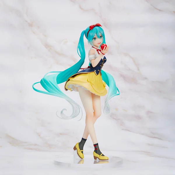 Découvrez l’incroyable fusion entre la légendaire diva virtuelle Hatsune Miku et l’univers des contes de fées avec cette superbe figurine éditée par Taito. Mesurant 18 cm, cette pièce unique capture dans une posture gracieuse, un sourire radieux illuminant son visage. Habillée de la célèbre tenue de Blanche-Neige, elle tient délicatement une pomme rouge, évoquant le charme intemporel de ce conte adoré. Une interprétation parfaite qui combine l’élégance de Miku et l’univers enchanteur de la magie.