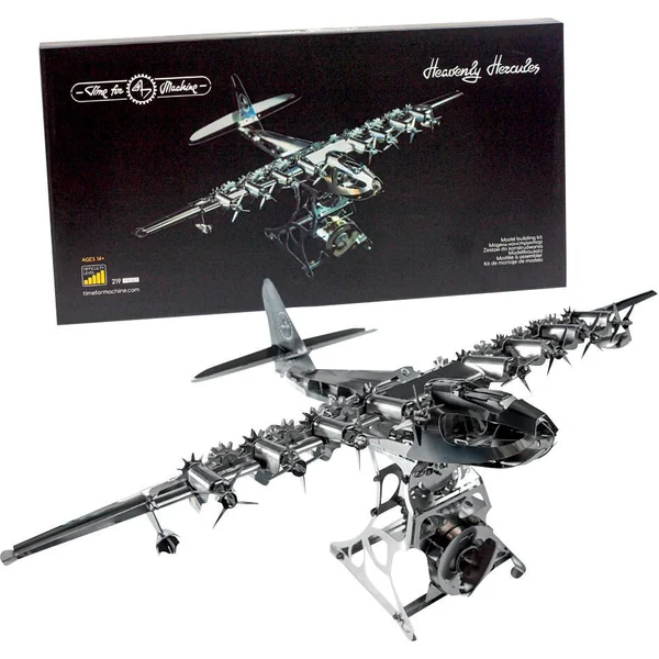 Un avion visionnaire qui s’inspire de l’avion avec la plus grande envergure constitué de huit moteurs en métal. Un mécanisme à la base de l’Avion fait tourner les hélices. Un ingénieux mécanisme permet à toutes les hélices de tourner simultanément. Vous pouvez tenir l’avion à sa base pour l’étudier de plus près. Le modèle est passionnant pour le spectateur. L’échelle est de 1: 300. L’assemblage d’un modèle est passionnant, et est pleinement apprécié par les grands enfants et perfectionnistes. Tous les amoureux de modélisme peuvent vous parler de la profonde satisfaction que leur procure l’assemblage non pas d’un simple modèle, mais d’un modèle qui est en plus mécanique. L’attention portée aux détails pour assembler un modèle, en suivant le manuel pas à pas, vous fascinera. En bref : kit de construction mécanique en métal à monter soi-même (DIY) ; transmission active ; pilotage automatique ; moteur pouvant être activé/désactivé. Infos techniques : dimension de la boîte : 37.2 x 19.5 x 3 cm, dimension du modèle : 32.5 x 22 x 12.8 cm. Le kit : plaquettes de pièces, spirale, engrenages, pinces, lime, gants, chiffon de polissage ainsi qu’un manuel d’instructions. Matière : acier inoxydable poli. (AISI 304). Nombre de pièces : 231 pièces. Manuel d’assemblage en Français, Anglais, Espagnol, Allemand et Russe. Poids net : 0.954 kg.