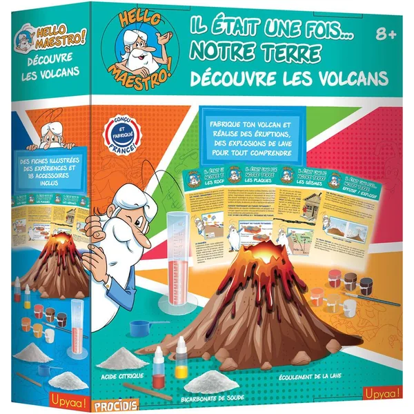 NOUVELLE SERIE  » notre terre » qui est diffusée depuis 2021 – Ce kit entre dans une démarche d’éco-conception, le packaging devient support du jeu. Kit pour créer son volcan et expérimenter à l’aide des fiches « Hello Maestro – Il était une fois » est une série de vulgarisation scientifique et historique -Dans le 1er volet crée il y a 40 ans, elle retrace l’histoire de l’humanité : des origines de la vie au 20ème siècle. D’autres séries furent crées par la suite, notamment : l’homme, l’espace, les découvreurs, en tout 7 thèmes. La série connait un succès mondial, elle est présente dans plus de 100 pays. Pour apprendre en s’amusant….tel est la devise du créateur d’Hello Maestro –