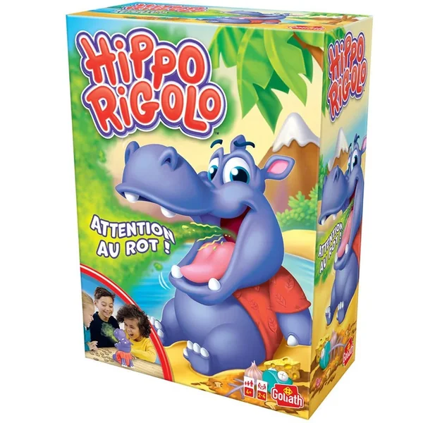 Hippo Rigolo adore manger … mais ses aliments préférés sont ceux qui sentent fort. Le but du jeu est d’essayer de collecter le jetons nourriture afin d’empêcher l’hippo de trop manger ! S’il mange trop, attention au rot !