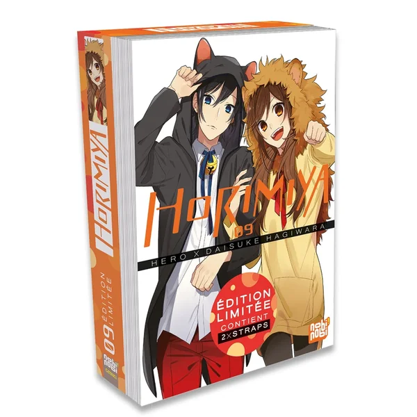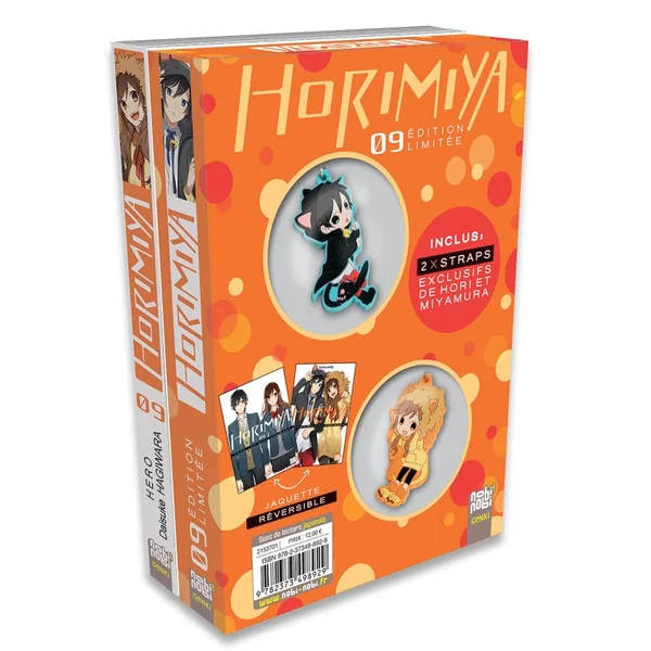 Ce Tome 09 Horimiya en Édition Limitée contient 2 Straps Exclusifs de Hori et Miyamura ainsi qu’une jaquette réversible !