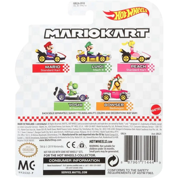 Mini-véhicules Hot Wheels à l’échelle 1:64 inspirés de Mario Kart, les enfants peuvent choisir leurs personnages Mario Kart préférés et se lancer dans des courses et cascades endiablées ! Stimulez leur imagination en leur laissant le choix entre les personnages emblématiques bien connus des fans de Mario Kart. Retrouvez le plaisir du jeu caractéristique des produits Hot Wheels, reproduisez les cascades incroyables du jeu vidéo, évitez les dangers, déverrouillez des fonctionnalités, faites la course et revivez de grandes aventures. Tous les véhicules représentant un joueur de Mario Kart peuvent être utilisés sur les pistes Hot Wheels. Tous vendus séparément.