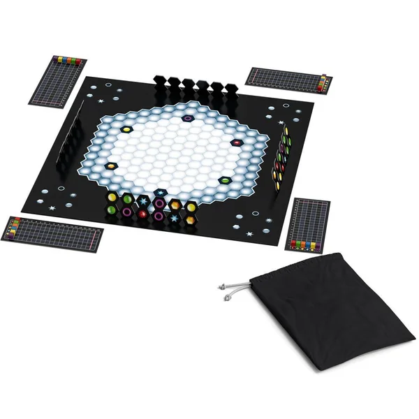 1 plateau, 24 marqueurs, 120 tuiles, 1 sac, 4 pistes de score et 1 règle du jeu.
