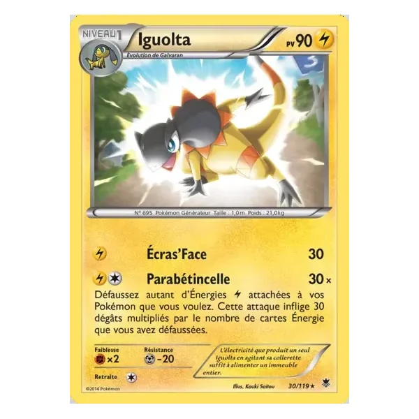 Découvrez Iguolta (phf030), une carte Pokémon de l’extension Vigueur Spectrale, provenant du bloc XY. Idéale pour compléter votre collection, cette carte Holo Rare plaira autant aux collectionneurs qu’aux joueurs.
