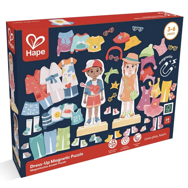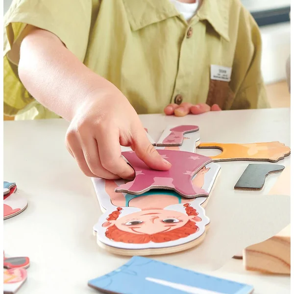 Associe les vêtements de ton choix pour créer une infinité de tenues et laisser libre cours à ton imagination. Aimantés, ils sont ainsi plus faciles à manier pour imaginer de nombreuses tenues !