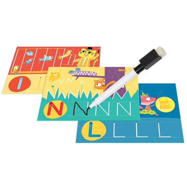 Un premier jeu pour faire ses premiers pas vers l’écriture avec un apprentissage progressif. L’enfant intègre les gestes préparatoires à l’écriture avec les graphismes et écris ses premières lettres sur les 13 planches effaçables et utilisables à l’infini.