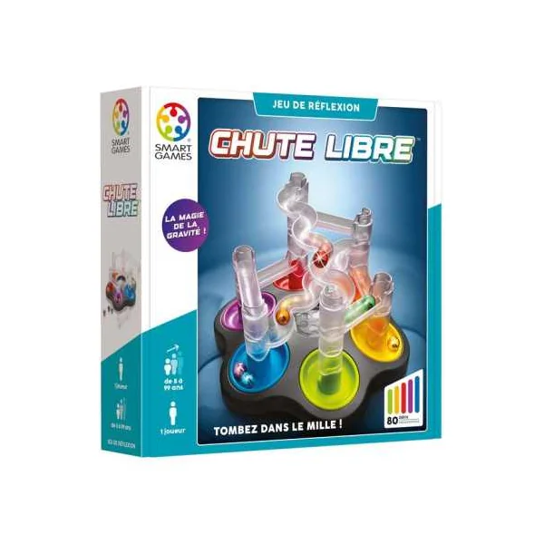Découvrez le jeu Chute libre de SmartGames, un jeu de logique captivant conçu pour jouer en solo dès 8 ans, avec 80 défis stimulants à relever. Un jeu de réflexion dans lequel vous devrez faire preuve d’ingéniosité pour surmonter chaque défi.