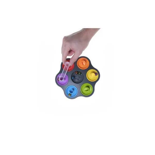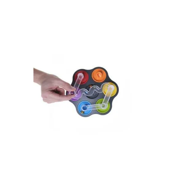 Construisez votre circuit et tombez dans le mille! Votre objectif sera atteint lorsque chaque bille, lâchée depuis l’entrée de rampe au-dessus de la base de sa propre couleur, terminera son parcours sur la base correspondante, validant ainsi le défi.