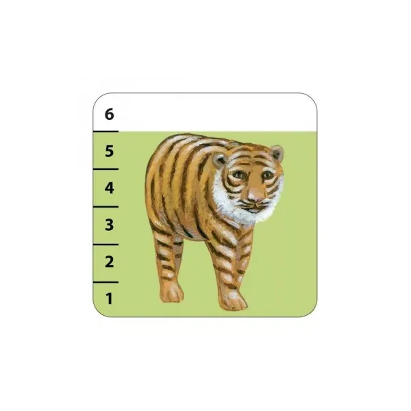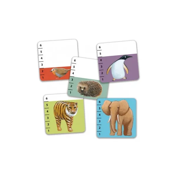 Les cartes sont graduées de 1 à 6, donc pour les plus petits, pas besoin de savoir compter, il suffit de comparer la taille des animaux! Une boîte de jeu compacte, un jeu de voyage à emporter partout.