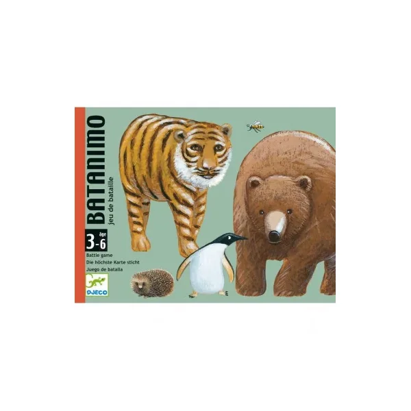 Découvrez Batanimo de Djeco, un premier jeu de bataille avec des règles inspirées des grands classiques des jeux de cartes pour les enfants de 3 à 6 ans.