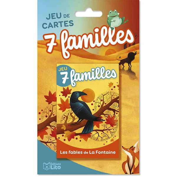 Qui gagnera le plus de familles ? A toi de réunir les 7 Fables : Le corbeau et le renard, Le renard et les raisins, La poule aux œufs d’or, La cigale et la fourmi, La colombe et la fourmi, Le lion et le rat, La grenouille qui se veut faire aussi grosse que le bœuf.