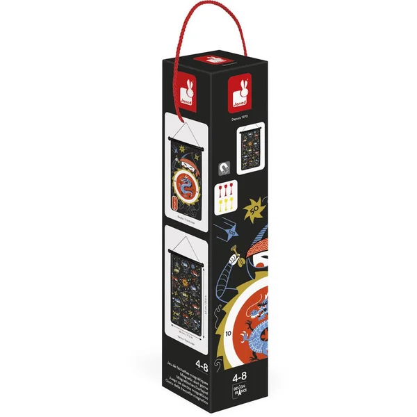 Défie tes adversaires et remporte le plus de points en visant juste ! La cible s’accroche facilement au mur grâce à une cordelette, et les 6 fléchettes en plastique sont aimantées pour plus de sécurité. En plus d’être ludique, ce jeu d’adresse est idéal pour développer la dextérité et la concentration de votre enfant. Jeu d’adresse magnétique pour les enfants-