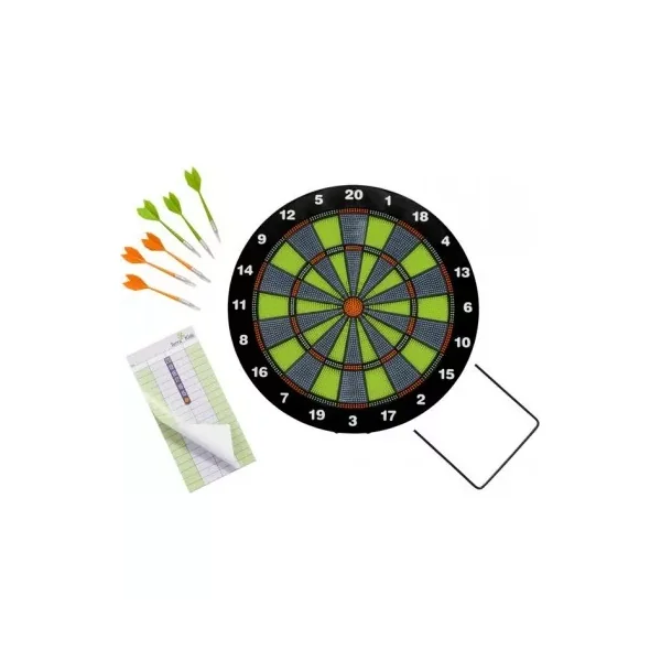 Un jeu de fléchette qui peut être posé sur une table ou fixé au mur, en intérieur ou en extérieur.