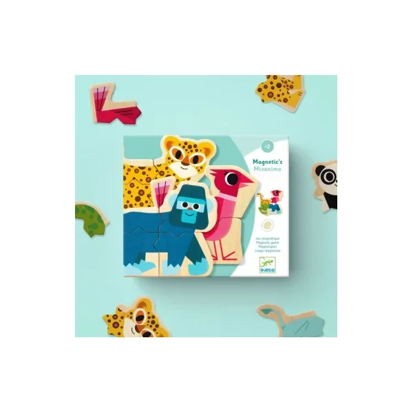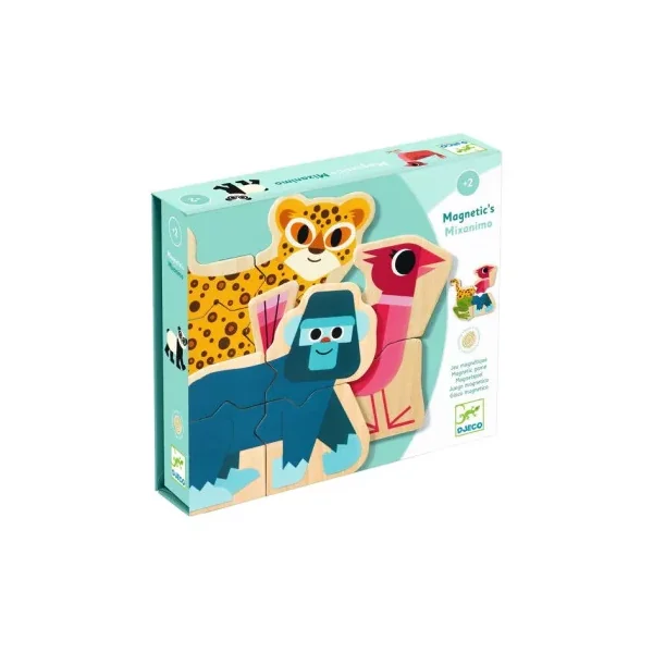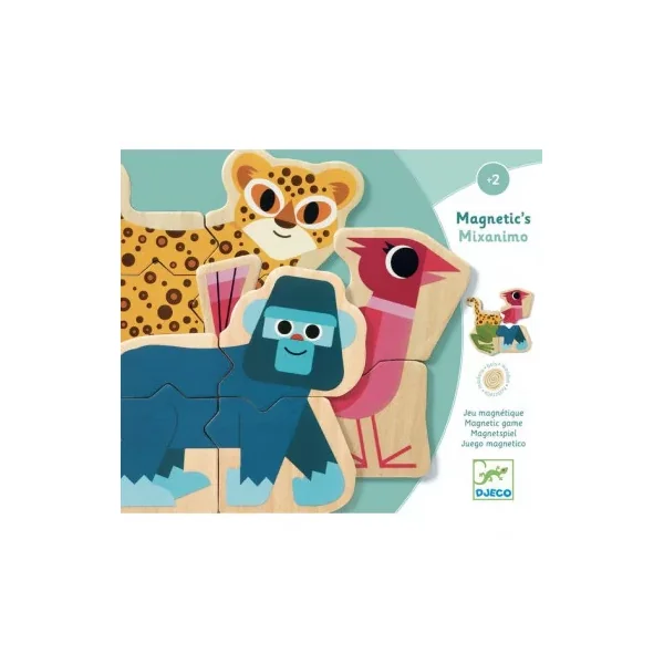 Découvrez Magnetic’sMixanimo de Djeco, un coffret de magnets en bois pour les enfants dès 2 ans, qui vont s’amuser à reconstituer des animaux. De grosses pièces en bois faciles à attraper et à manipuler par des petites mains.