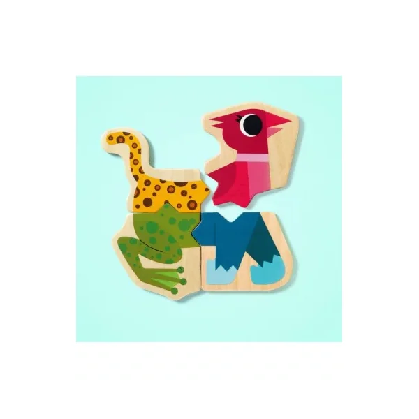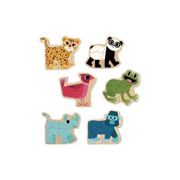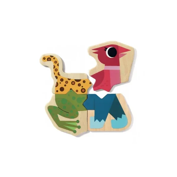 Ce jeu se compose de 24 pièces magnétiques en bois permettant de reconstituer 6 animaux en 4 parties : un guépard, un panda, un oiseau, une grenouille, un rhinocéros et un gorille… et bien entendu votre enfant s’amusera à mélanger les pièces pour créer des animaux farfelus. Des encoches permettent un meilleur placement des pièces entre elles.