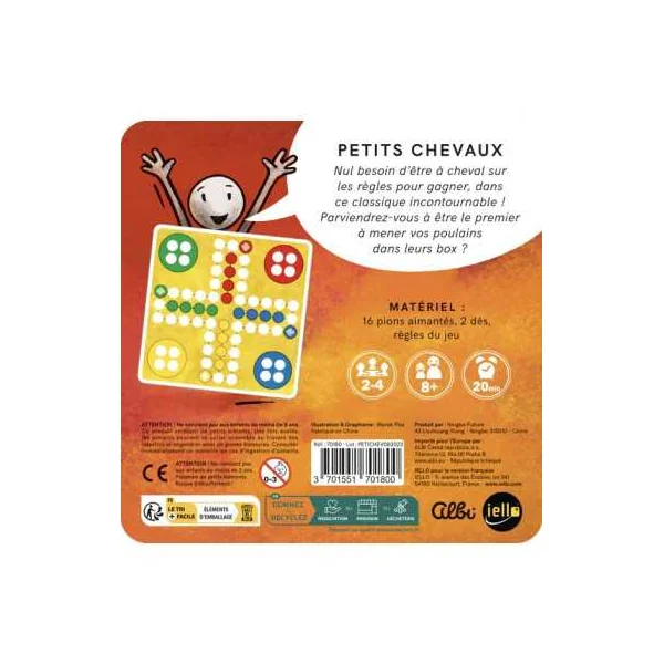 Découvrez le jeu magnétique Petits Chevaux de Iello, un jeu de voyage intemporel, un incontournable des jeux de plateau pour jouer de 2 à 4 joueurs, à partir de 8 ans.