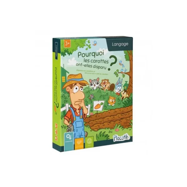 Découvrez le jeu Pourquoi les carottes ont-elles disparu? de Placote, un jeu de langage pour jouer 2 à 4 joueurs à partir de 3 ans. Un jeu éducatif pour développer la compréhension des questions comprenant « pourquoi ». Réponds aux questions et découvre qui a voler les carottes.