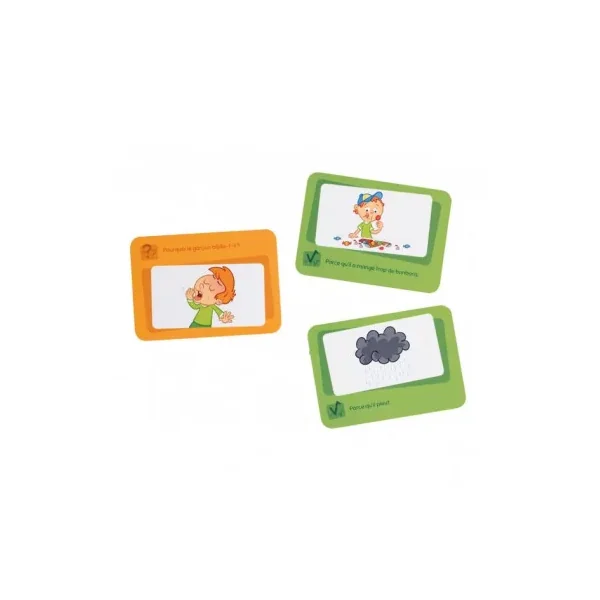 Pourquoi les carottes ont-elles disparu? est conçu pour aider les enfants de 3 ans à 5 ans et demi à développer leur compréhension des questions formulées avec le mot interrogatif «pourquoi». Les cartes questions-réponses illustrées leur permettent de valider eux-mêmes leurs réponses.