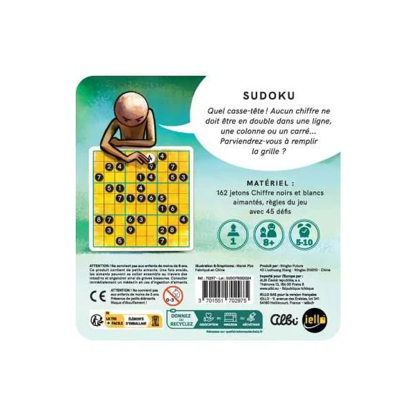 Découvrez le jeu magnétique Sudoku de Iello, un jeu de voyage intemporel, un incontournable des jeux de réflexion pour développer votre esprit logique dès 8 ans.