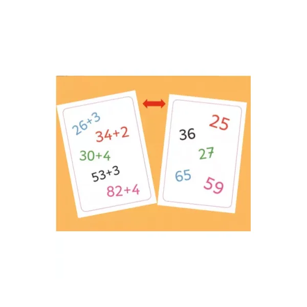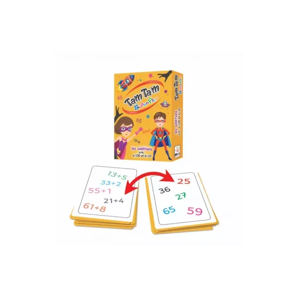 Le jeu contient 42 cartes Tam Tam (1 série avec les additions et 1 série avec les résultats) et les règles de jeux.