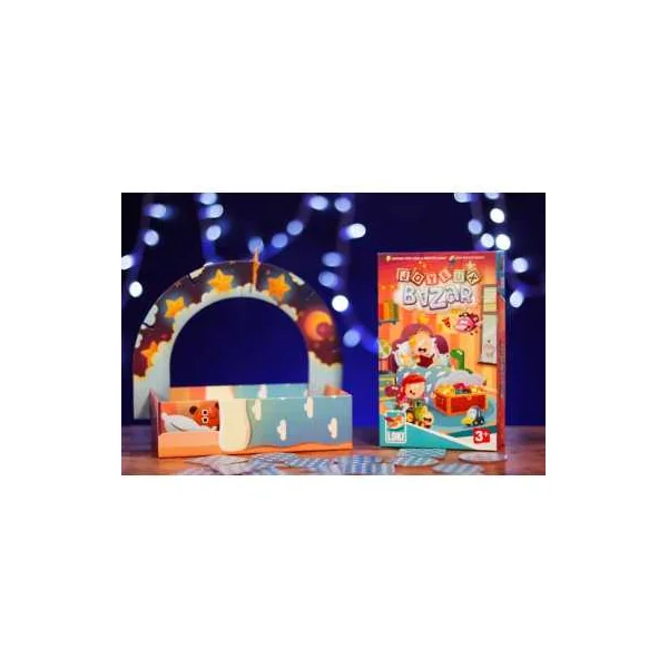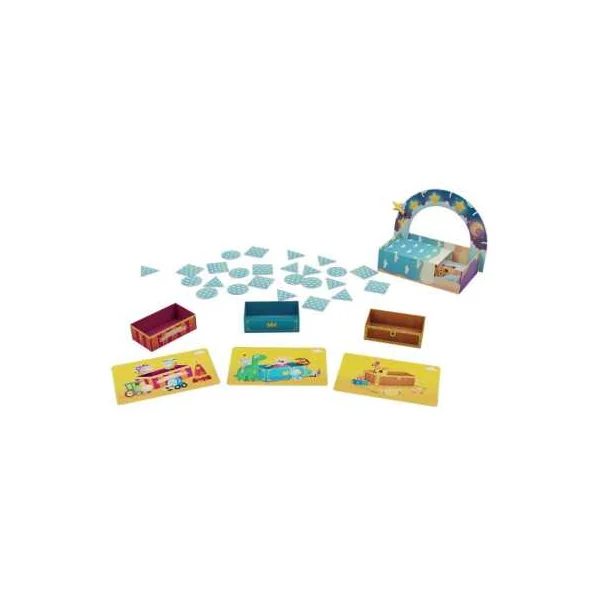 Quel bazar dans ta chambre! C’est presque l’heure de se coucher, mais tous tes jouets sont partis à l’aventure et se sont perdus. Aide-les à retrouver leurs boîtes de rangement avant que les étoiles ne brillent dans le ciel nocturne. Pour cela, révèle un jeton « Jouet » et observe-le attentivement. Range-le dans le coffre correspondant ou place-le dans ton lit douillet s’il n’apparaît sur aucune illustration de coffre. Attention à ne pas révéler trop d’étoiles, car elles te rapprochent de la tombée de la nuit et de la fin de la partie.