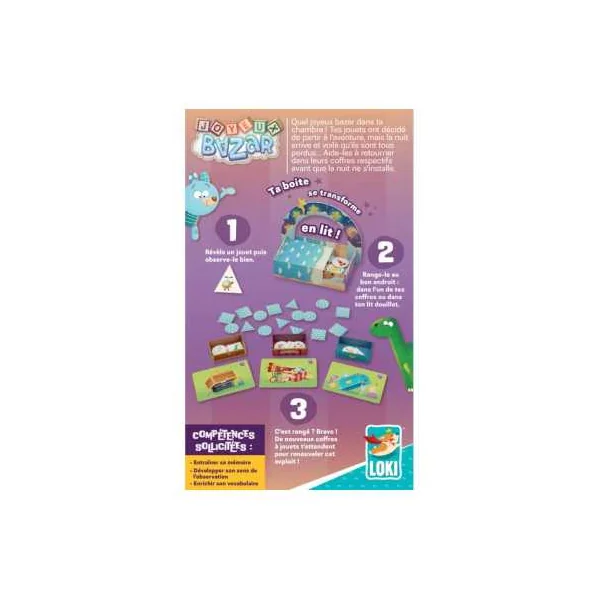 Découvrez le jeu Joyeux Bazar de Loki, un jeu coopératif parfait pour stimuler la mémoire des enfants dès 3 ans. Un jeu de société avec des mises en scènes amusantes et douces pour développer leur sens de l’observation sur 3 niveaux différents.