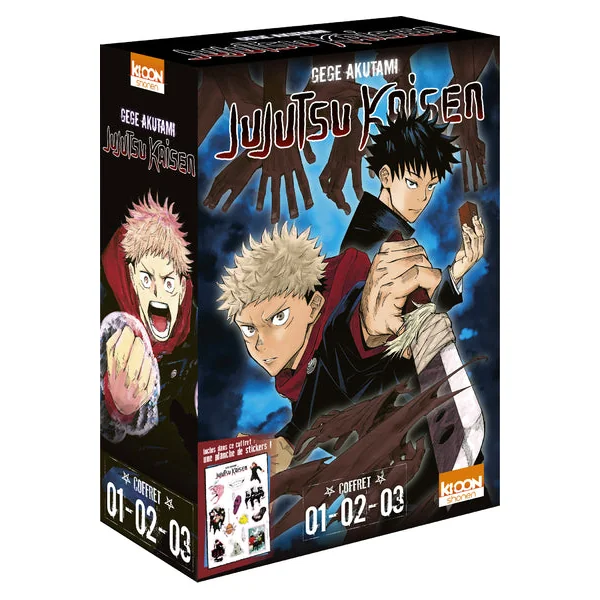 Ce Coffret Jujutsu Kaisen contient les 3 premiers tomes de la série+ une planche de stickers exclusive.