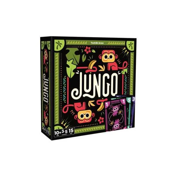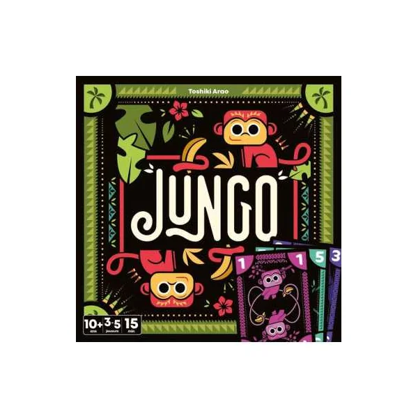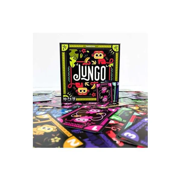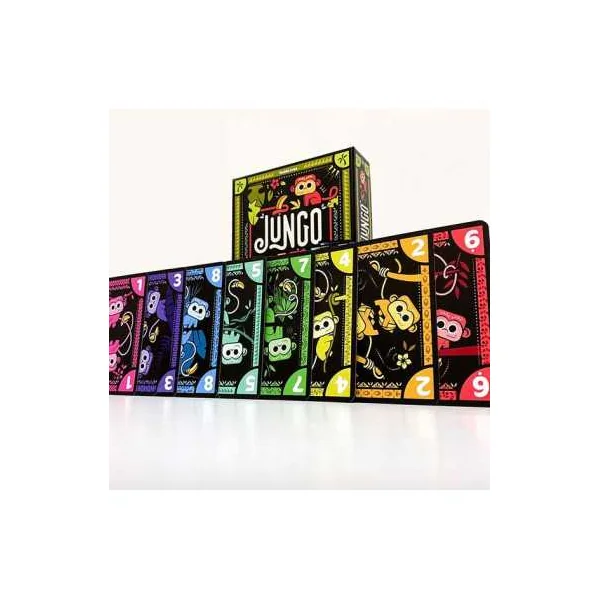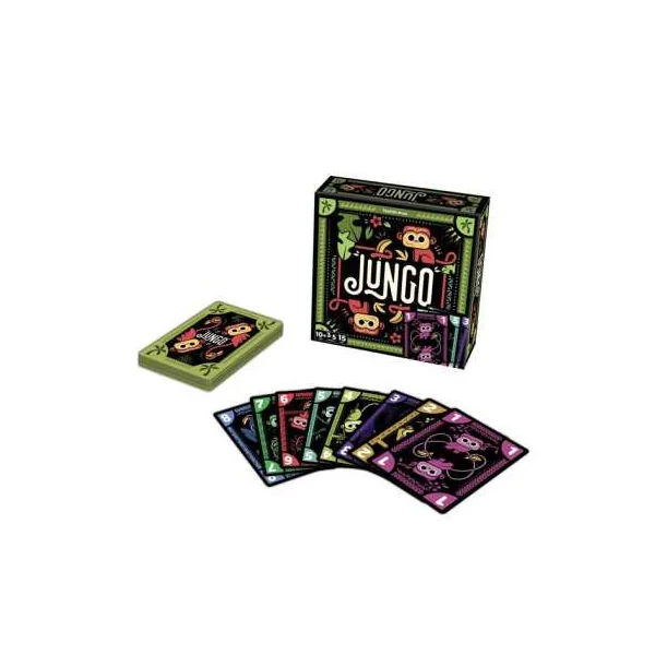 Jungo est un jeu de construction de main où le but est d’être le premier à se débarrasser de toutes ses cartes. A chaque tour, vous devez battre la combinaison sur la table en jouant des cartes adjacentes de même valeur de votre main… sans jamais les trier !