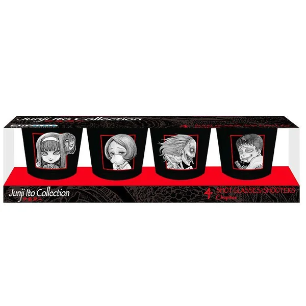 Portez un toast au maître japonais du manga d’horreur avec ce set de shooters Junji Ito par ABYstyle. Cet ensemble de 4 verres comprend les personnages de certaines de ses histoires les plus terrifiantes : Tomie, Souichi et Fuchi, ainsi qu’un visuel d’une planche de manga. C’est le cadeau idéal pour tout fan d’horreur.