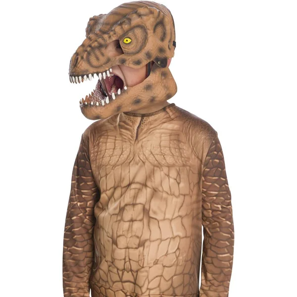 Un grand masque de T-REX en pvc avec machoire articulée. Attache élastique à l’arrière.