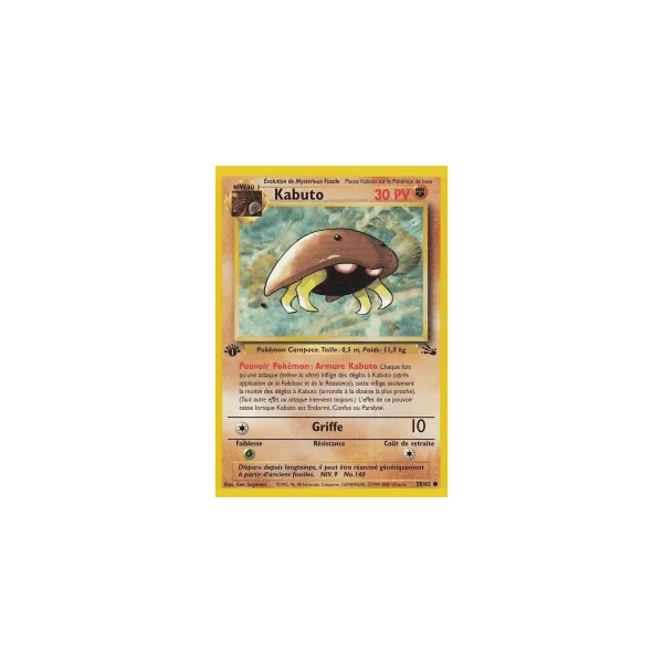 Découvrez Kabuto (fo050), une carte Pokémon de l’extension Fossile, provenant du bloc Wizards. Idéale pour compléter votre collection, cette carte Commune plaira autant aux collectionneurs qu’aux joueurs.