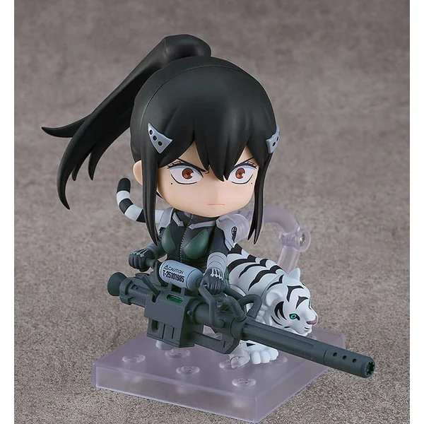 En plus des visages interchangeables, cette figurine comprend plusieurs accessoires emblématiques du personnage. Vous trouverez son fidèle tigre Bakko, ainsi que son arme personnelle, un gigantesque canon qu’elle utilise pour anéantir les Kaijus. Le masque des Forces de défense et d’autres pièces facultatives permettent de varier les poses et de recréer les scènes les plus intenses du et de l’anime.