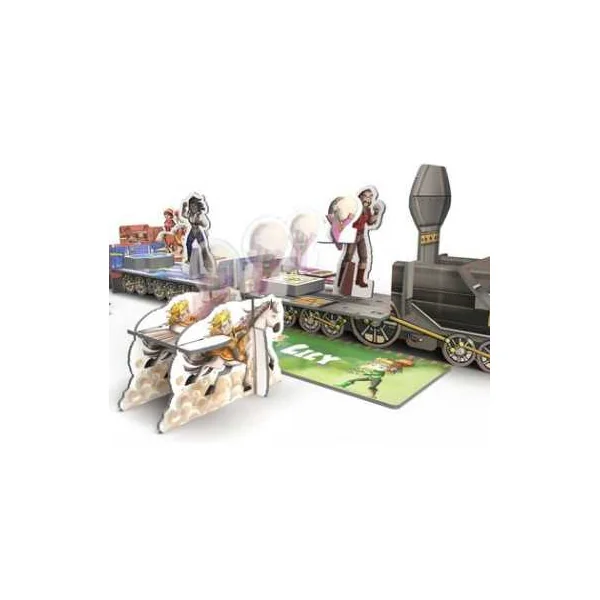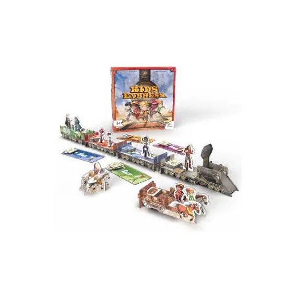 Dans ce jeu, vous devrez décider, soit de se déplacer dans le magnifique train 3D, soit de dégommer un Bandit. Posez alors le projectile sur la plateforme prévue à cet effet et donnez un coup de pichenette pour le faire voler. Touché, le Bandit retourne dans son Repaire. Ramassez un bagage et appliquez l’un des quatre effets indiqué au dos. Les Bandits se déplacent, ramassent des Bagages, vous éjectent du train… La partie s’arrête immédiatement dès qu’une pile de Bagages du train est vide. Formez alors deux piles, une composée des bagages récupérés par tous les enfants et l’autre avec ceux des Bandits. La pile avec le plus de Bagages l’emporte et donne la victoire à l’équipe qui l’a constituée.