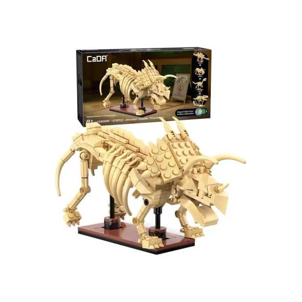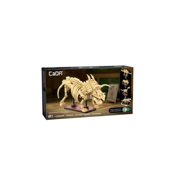 Découvrez le coffret Squelette de Triceratops 272 pièces de CaDA Créative, un jeu de construction avec des briques pour réaliser un squelette de dinosaure qui brille dans la nuit à partir de 8 ans.